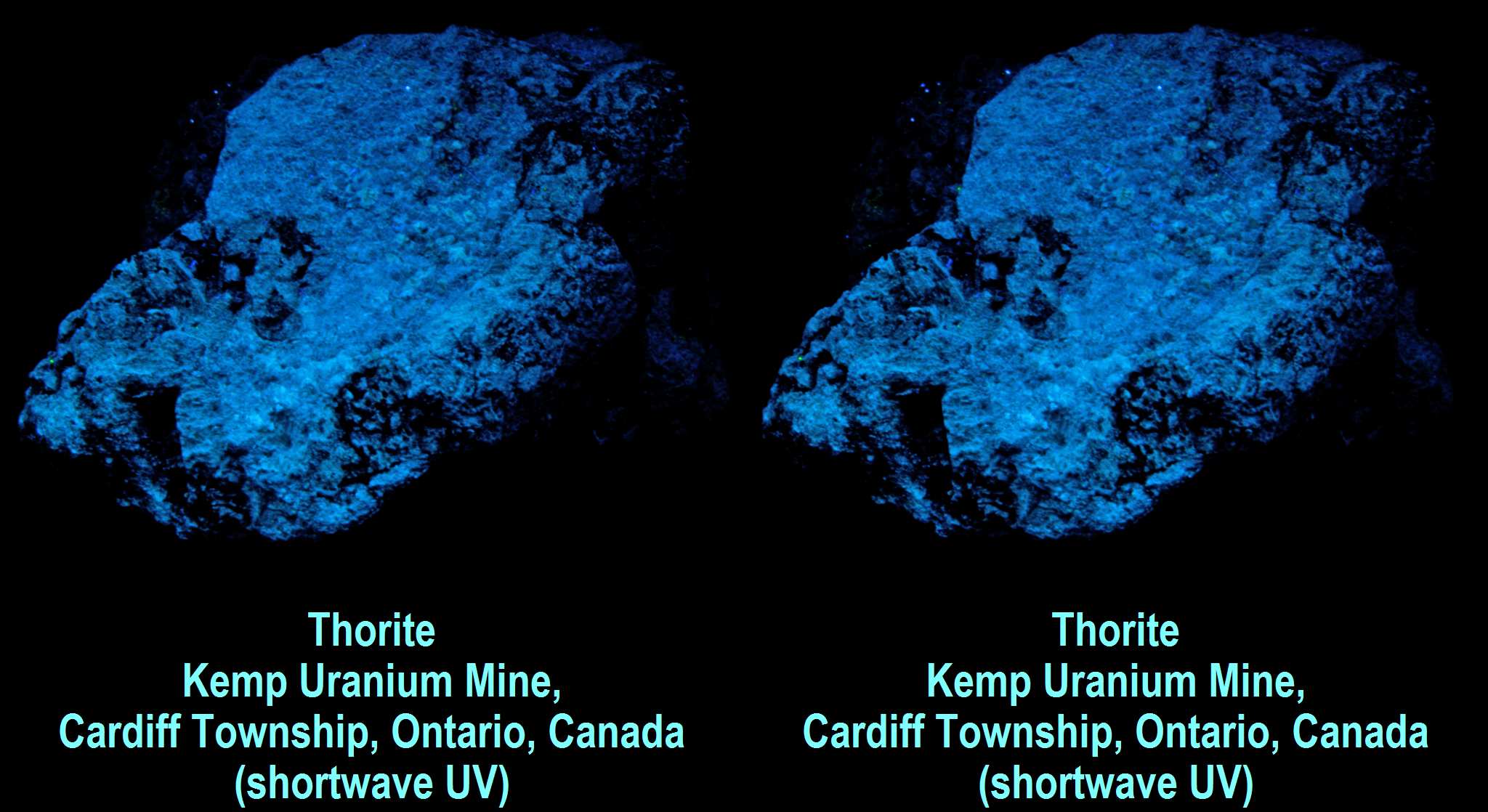 Thorite - Kemp Uranium Mine, Cardiff Township, Ontario, Canada (shortwave UV)