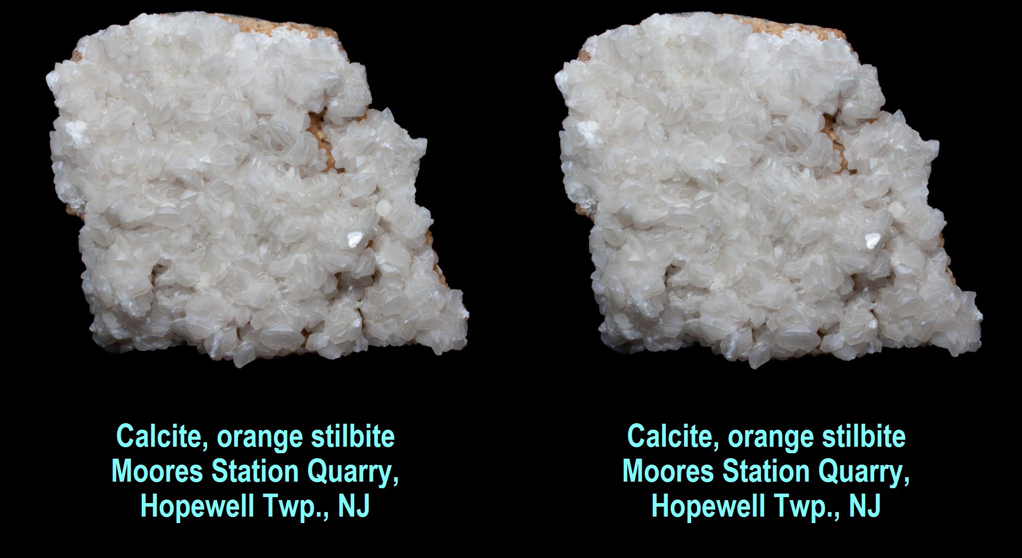 Calcite, orange stilbite - Moores Station Quarry, Hopewell Twp., NJ
