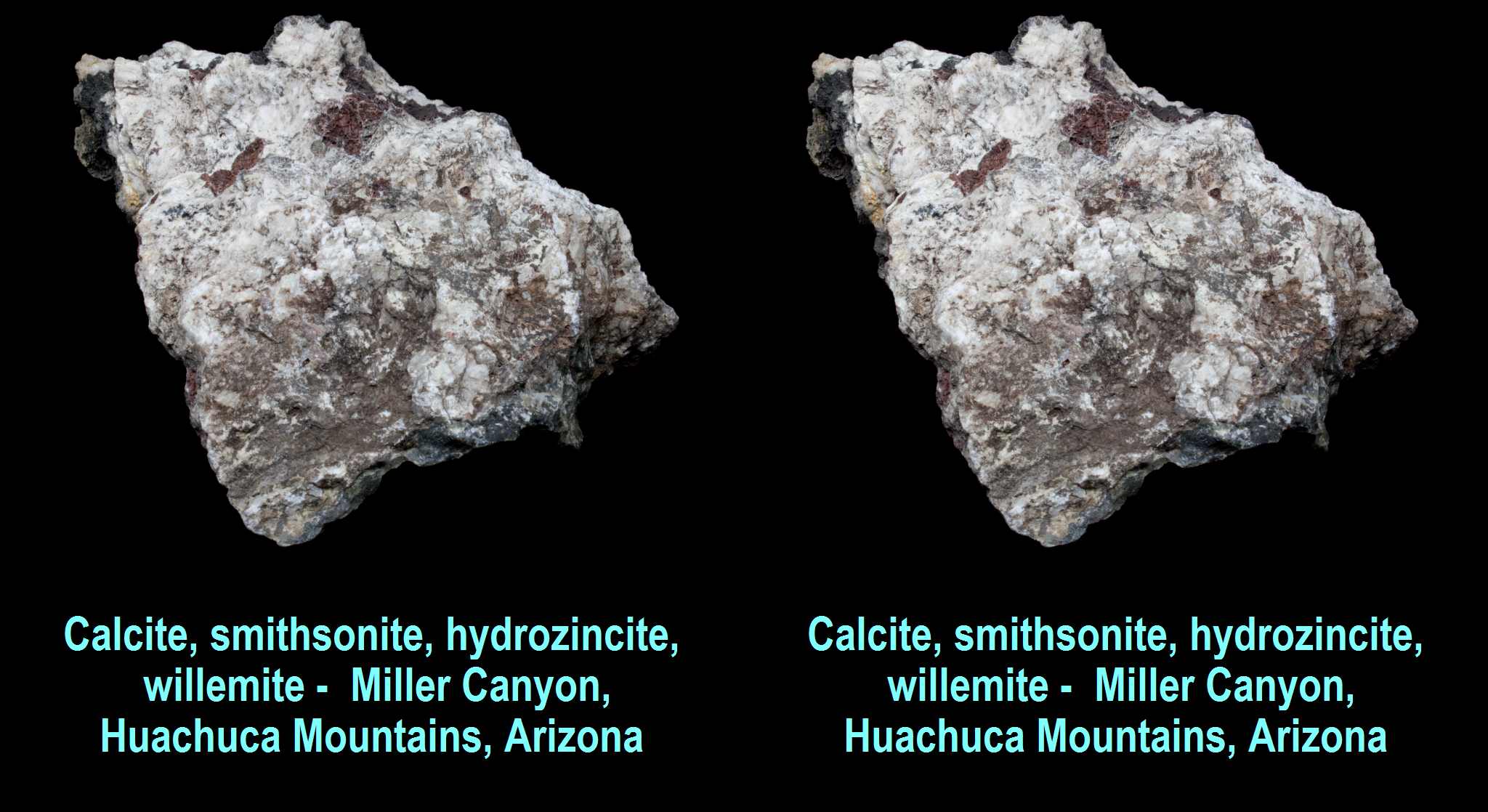 Calcite, smithsonite, hydrozincite, willemite - Miller Canyon, Huachuca Mountains, Arizona