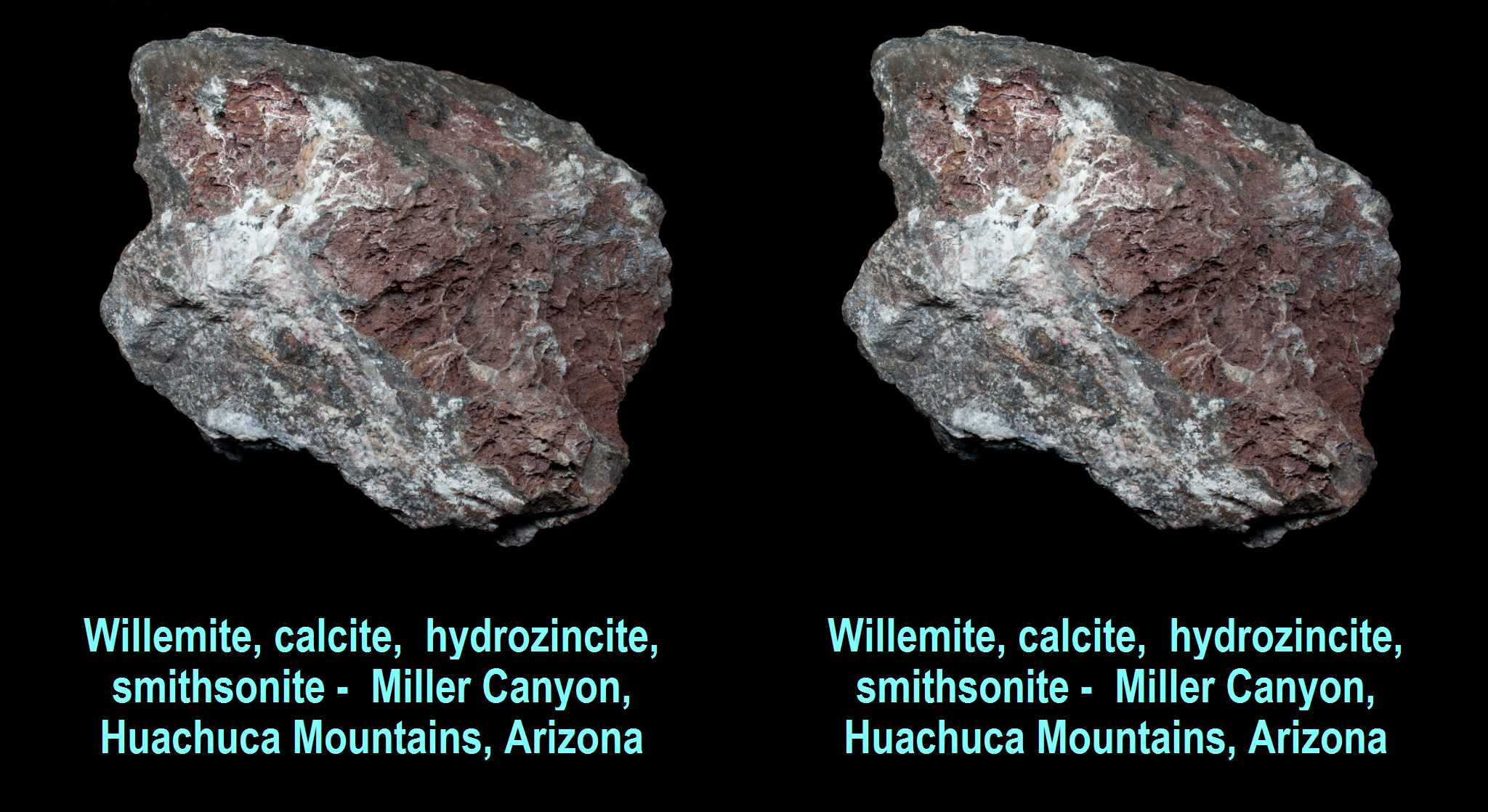 Willemite, calcite, hydrozincite, smithsonite - Miller Canyon, Huachuca Mountains, Arizona
