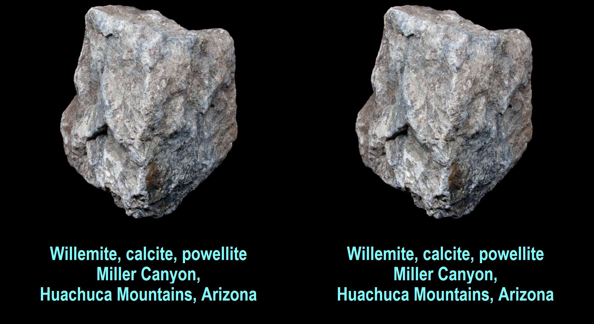 Willemite, calcite, powellite - Miller Canyon, Huachuca Mountains, Arizona