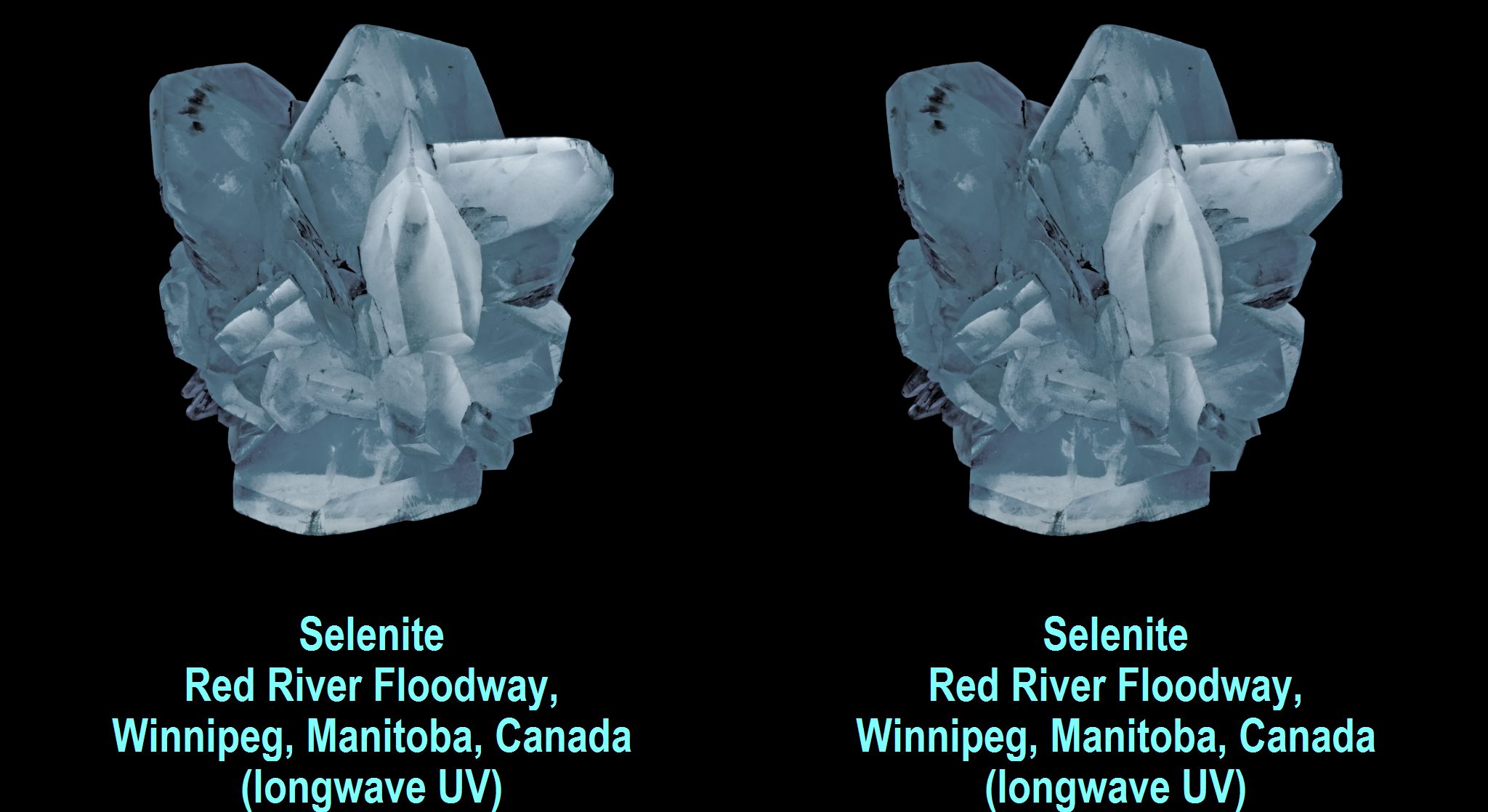 Selenite - Red River Floodway, Winnipeg, Manitoba, Canada (longwave UV)