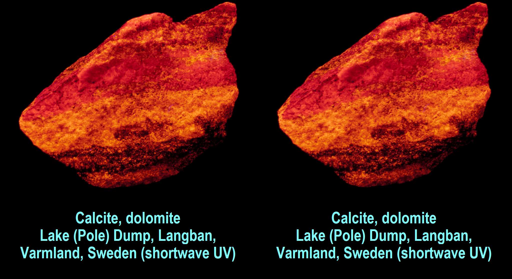 Calcite, dolomite, Lake (Pole) Dump, Langban, Varmland, Sweden (shortwave)