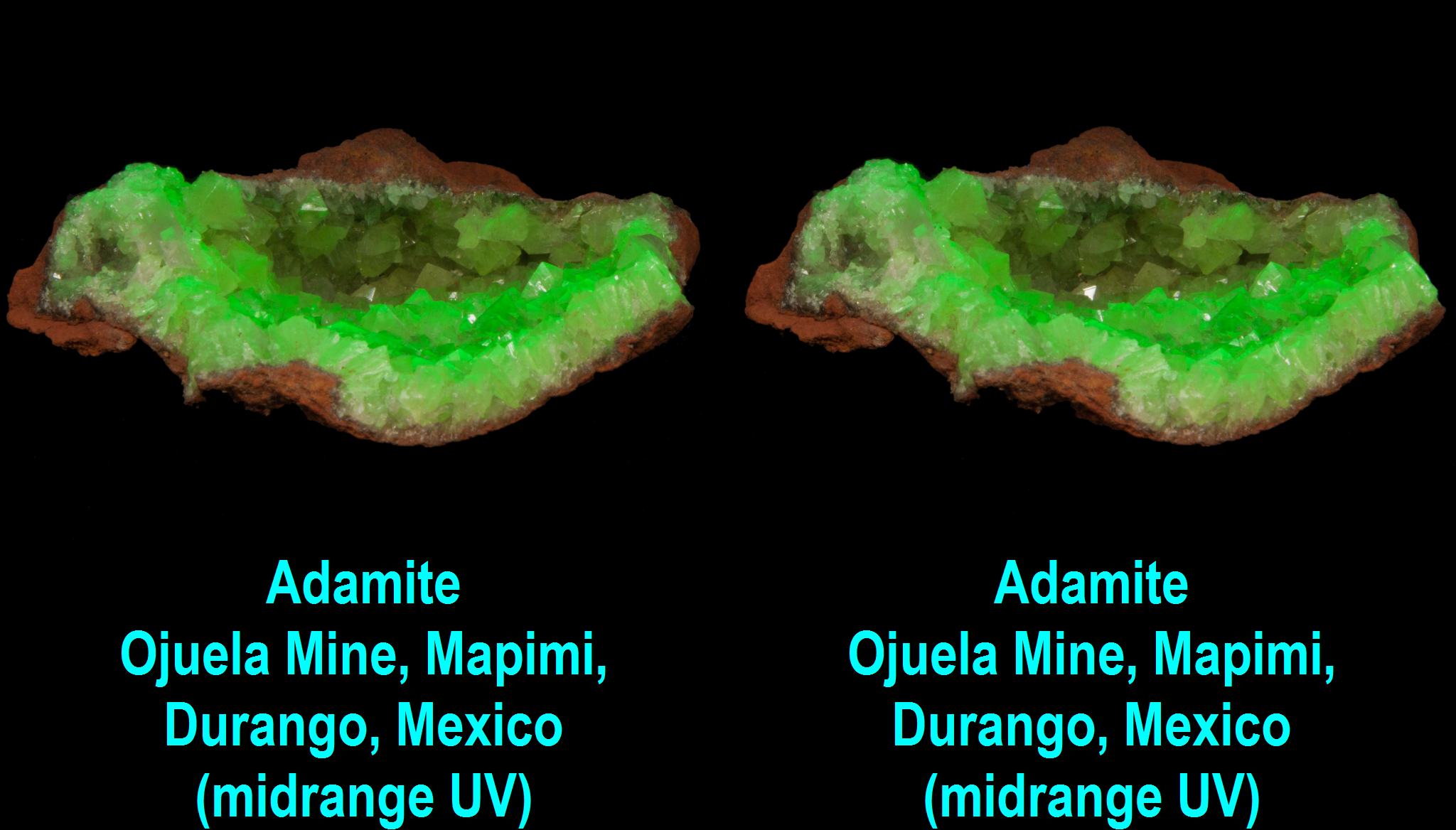Adamite, Ojuela Mine, Mapimi, Durango, Mexico (midrange UV)